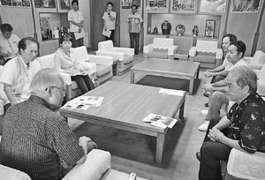 ![]() (写真)浦崎副知事(手前左)に申し入れをする党沖縄県議団=13日、沖縄県庁 |