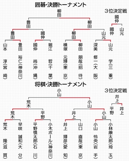 囲碁のベスト4は全員20代以下、将棋も20代3人と30代1人がベスト4入りし、アマ棋界の“若手戦国時代”を現出しました。