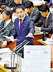 「口裏合わせ」の会合では、国職員が“3メートルより下から新たなゴミが出た”として値引きの「ストーリー」を学園側に提案。財務省の太田充理財局長は答弁で、3メートルより下から出た新たなゴミの処理費の「資料提出」を学園側に求めたやりとりだと弁明しましたが、辰巳氏から実際に資料が提出されたのかと問われても具体的に示せませんでした。