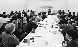 ![]() (写真)国立大学の非常勤職員雇い止めをやめさせようと開かれた院内集会=4日、参院議員会館 |