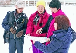 ![]() (写真)住民から説明を受ける(右手前から)加賀屋県議と紙議員=30日、秋田市 |