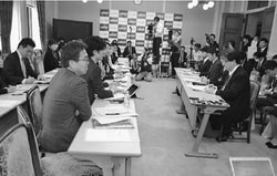 ![]() (写真)文科省の答弁に対し、厳しい指摘をする野党議員ら(左側)=19日、東京都千代田区 |
