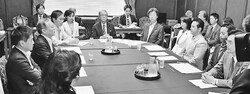 ![]() (写真)参院予算委員会理事懇談会。左端は辰巳孝太郎議員=22日、国会内 |