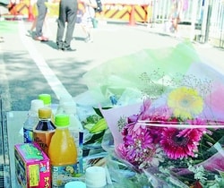 ![]() (写真)寿栄小学校前に設置された献花台と、亡くなった児童への思いが書かれた短冊=2日、大阪府高槻市 |