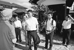 ![]() (写真)住民(左端)から要望を聞く清水(右から3人目)、佐藤(同2人目)、杉本(右端)の各氏ら=2日、滋賀県米原市 |