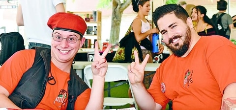 ![]() (写真)「米国民主的社会主義者」(DSA)のメンバー、エンジェル・カスティーヨさん(右)=8月26日、ロサンゼルス |