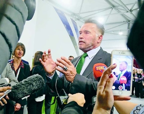![]() (写真)COP24会場を訪れた俳優のアーノルド・シュワルツェネッガー氏=3日、カトウィツェ(岡本あゆ撮影) |