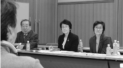 ![]() (写真)漁業者と懇談する(右から)倉林明子、紙智子両参院議員=8日、京都府舞鶴市 |