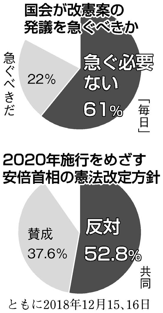 志位 それが強い批判を招いた。新藤義孝氏を衆院憲法審の筆頭理事に据え、官邸の指示で、憲法審を、与野党の合意のないまま一方的に開催したことも強い批判を招きました。結局、こういうことがすべて裏目に出て失敗した。それでも安倍首相は決して野望を捨てていません。