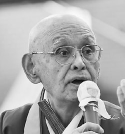 お釈迦(しゃか)様は五つの大きな戒めをおっしゃっています。その中で一番大きな戒めは「殺し合いはいけない」です。安倍(首相)さんが憲法9条を改悪して戦争のできる日本にしようしている。もっての外です。われわれ坊主は黙って見てられません。