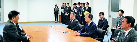 松本幸英楢葉町長、宮本皓一富岡町長も同席し、「町民と復興にとってプラスのメッセージになる。一日も早くお願いしたい」などと話しました。