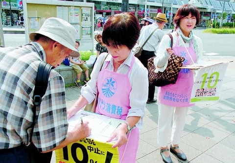 東京都北区の女性(74)は「10月まで1カ月ちょっとだから中止は難しいかも」と話しましたが「8%でも大変なのにこれ以上取られるのは嫌。何より安倍政権を倒したい。少しでも意思表示しなくてはいけない」と署名に応じました。