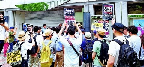 東京都千代田区にあるCBC中部日本放送前、港区にあるTBS本社前でも31日、「ゴゴスマ」での民族差別発言に対する抗議集会が行われました。