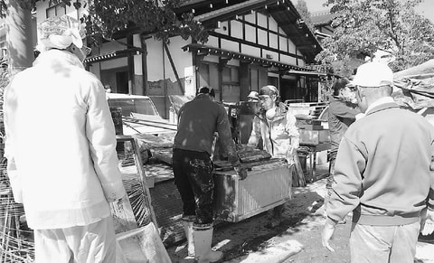 ![]() (写真)豊野地区の被災住宅から家財道具などを運び出すボランティア=19日、長野市 |