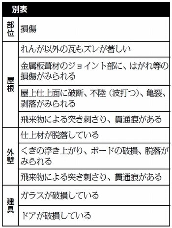 罹災証明の発行に当たっては、被害の状況を写真に残しておくことが重要になります。別表のような箇所があれば、被害の場所や状況が分かるように、近景と遠景の写真を残しておくことが大切です。また、浸水被害の場合は、水につかった深さが分かるようにメジャーなどを活用して遠近両方を撮影することが有効です。