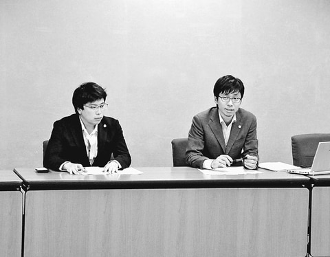 ![]() (写真)緊急声明を発表する日本労働弁護団の市橋耕太事務局次長(右)ら=21日、厚生労働省 |
