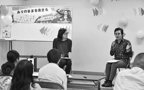 ![]() (写真)ジェンダー平等や多様性について語る池内氏(正面右)=27日、高知市 |