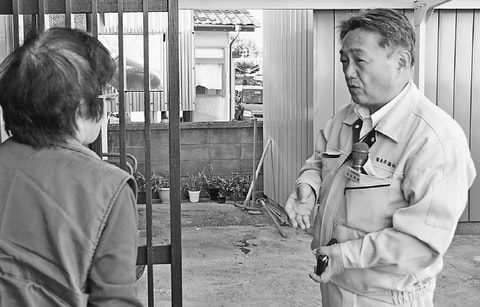 ![]() (写真)被災者から現状や要望を聞く吉田氏(右)=28日、福島県いわき市 |