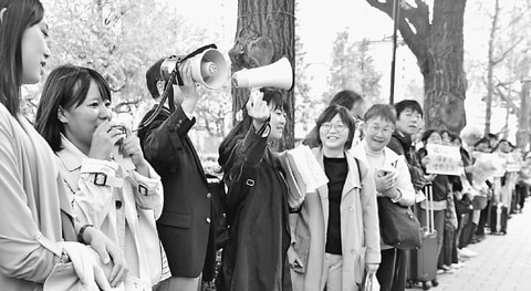 大阪府から初めて参加した保育士の男性(34)は「約20人の職場です。給料が低く、休みも取れない状況で去年、6人が辞めました。私も家で指導計画作りに追われています。こうやってみんなで集まって政治家に直接、処遇改善を訴えられる機会は貴重です」と話しました。
