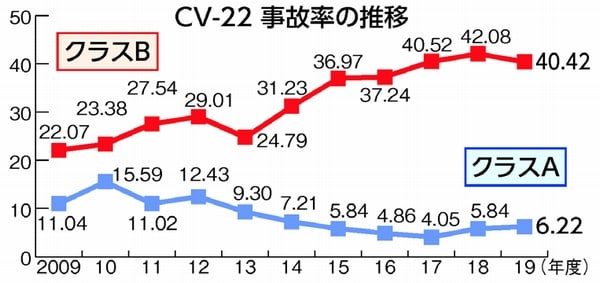 統計によれば、「クラスA」事故率は17年度が4・05だったのに対し、18年度は5・84、19年度は6・22と上昇。米空軍の有人機の中では最多です。