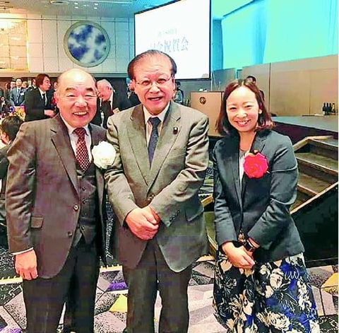 ![]() (写真)創立80周年記念祝賀会で。左からいで会長、市田副委員長、吉良参院議員 |