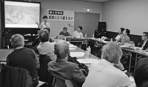 第5分科会「豪雨にどう備えるか」では、西日本豪雨での岡山県倉敷市真備町の浸水被害を教訓に河川の氾濫を防ぐ取り組みについて意見を交わしました。