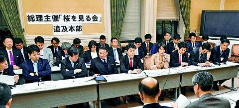 ![]() (写真)「桜を見る会」追及本部の合同ヒアリング=26日、国会内 |