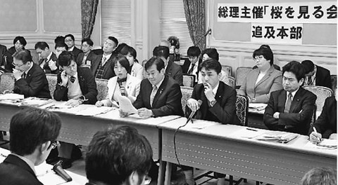 ![]() (写真)「桜を見る会」追及本部のヒアリング=17日、国会内 |