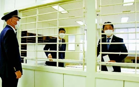 ![]() (写真)サニーさんが亡くなる直前まで収容されていた部屋をみる(右から)藤野、山添両氏=19日、長崎県大村市 |