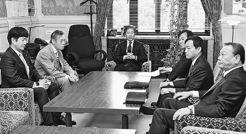 ![]() (写真)野党国対委員長連絡会。左から2人目は共産党の穀田恵二国対委員長=25日、国会内 |
