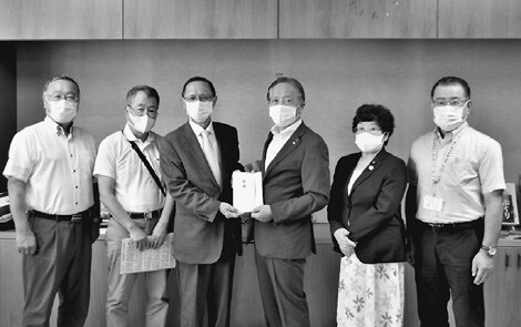 日本共産党鹿児島県委員会は17日から20日までの4日間で、7月の豪雨で被災した9自治体(大崎、長島の両町、伊佐、いちき串木野、指宿=いぶすき=、薩摩川内=さつませんだい=、鹿屋=かのや=、垂水=たるみず=、志布志=しぶし=の各市)の市役所・町役場を訪れ、党中央委員会に寄せられた救援募金を義援金として各首長に手渡しました。