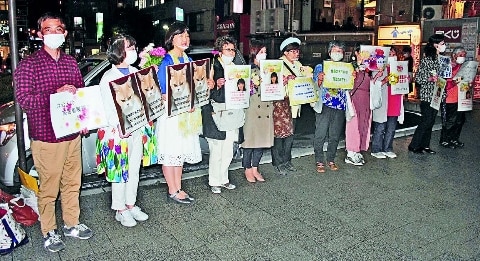 性暴力に反対する「フラワーデモ埼玉」の呼びかけ人と有志らは26日、さいたま市の浦和駅東口で緊急スタンディングを行いました。日本共産党の梅村さえこ衆院北関東比例予定候補も駆けつけました。緊急スタンディングは「女性はいくらでもうそをつけますから」という自民党の杉田水脈衆院議員の暴言に抗議するものです。