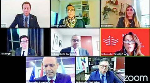 ![]() (写真)ICANと条約推進の10カ国政府が共催したオンライン会合=23日 |