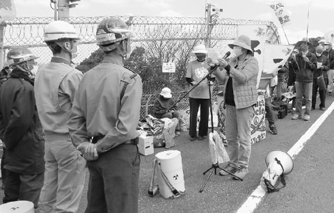 愛媛県伊方町の四国電力伊方原発ゲート前で25日、第34回伊方集会が開かれ、座り込みと四国電力に抗議・要請の後、ビラを町内にポスティングしました。県内外から党派や立場の違いを超えて集い、スピーチし、歌い、語り合い、交流しました。主催は、原発さよなら四国ネットワーク。