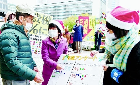 買い物に訪れた女性(67)=東京都調布市=は「生活必需品にも消費税が10%かかるのは重い。衣類など、ずっと買っていません。減税されれば、ずいぶん暮らしが楽になります」と話し、署名しました。