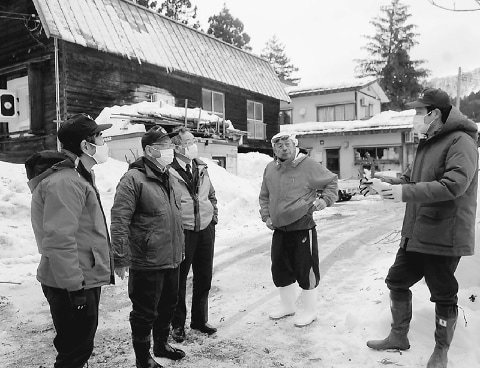 武田氏らは、4メートル20センチの最大積雪を記録した同市中ノ俣地区を調査。70歳の男性は「除雪のためのユンボ(重機)が足りない。国がきちんと手配してほしい」と要望しました。同地区在住の女性は記録的な豪雪を「歩くのにカンジキを使っても、胸まで雪が漬かる」と振り返りました。