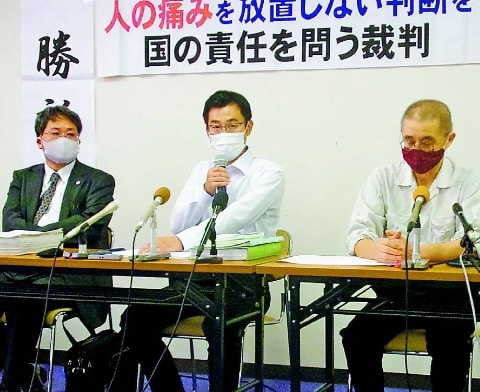 ![]() (写真)判決を受け会見する野垣弁護士(左)と原告団=29日、高松市 |