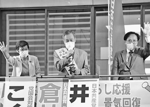 こくた氏は、自民党の甘利明幹事長による「自由民主主義の政権か、共産主義が入る政権か」との発言に触れ「古いおためごかしの話で争点をそらすやり方は通用しない」と強調。「真の対決軸は、命を守り抜く政治か、命をないがしろにする政治かだ。野党共闘の発展にぶれずに取り組んできた共産党を伸ばしてほしい。皆さんと一緒に命と暮らしを守り抜く政治をつくるため、近畿比例4議席、そして京都1区から勝ち抜きたい」と力を込めました。拍手を送っていた女性(72)は「共産党が伸びないと日本の針路は危ないと周りに広げたい」と語りました。