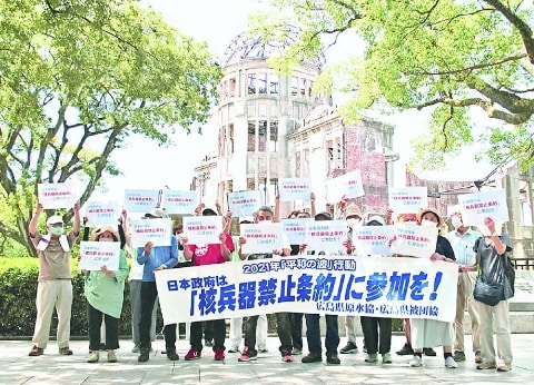 岸田文雄首相は、自身を「広島出身の首相」と強調する一方、安倍政権の外相時代、核兵器禁止条約は「核保有国と非保有国の分断を生む」として条約参加を拒否。核廃絶を訴える被爆者の願いに背を向けてきました。