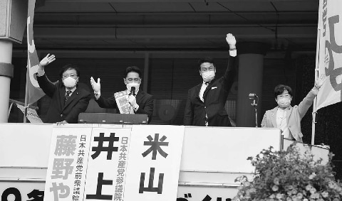 日本共産党の藤野やすふみ北陸信越比例予定候補は16日、井上哲士参院議員の応援を受けて新潟県長岡市で街頭から政権交代と比例での党躍進への支援を訴えました。米山隆一・新潟5区野党統一予定候補も決意表明しました。