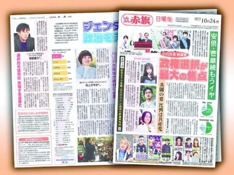 沖縄1区と京都1区のたたかいをリポート。「ジェンダー平等へ政治をチェンジ」をカラー見開きでお届けします。