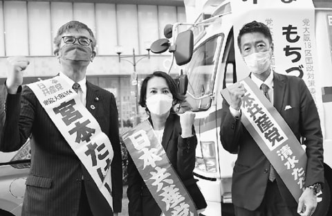 岸田政権与党の自民党、公明党は「自公連立は唯一の選択肢」(大阪で山口那津男代表)と野党連合政権への期待の高まりを警戒。維新の参院議員が京都駅前で口汚い反共演説をするなど野党共闘の要である共産党への攻撃を強めています。