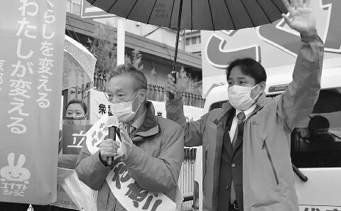 日本共産党の、こくた恵二衆院近畿比例・京都1区候補は25日朝、応援に駆け付けた立憲民主党の川田龍平参院議員とともに、京都市上京区・中京区の4カ所で街頭演説し、「京都1区の野党候補・こくた恵二の勝利、日本共産党の比例での躍進で政権交代を」と訴えました。