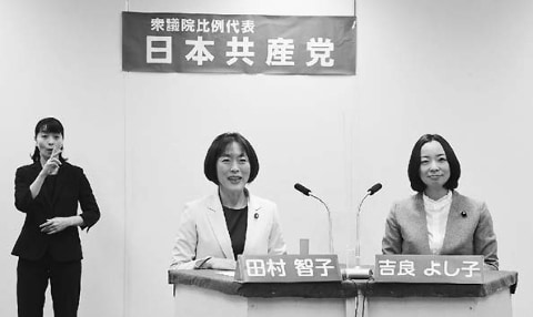 日本共産党の総選挙の政見放送がテレビ・ラジオで始まっています(放送日時は22日付本紙に掲載)。比例代表では、田村智子副委員長が吉良よし子参院議員と、総選挙の争点と政策、日本共産党の役割を訴えています。内容を紹介します。