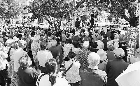 ![]() (写真)志位和夫委員長の訴えを聞く人たち=27日、那覇市 |