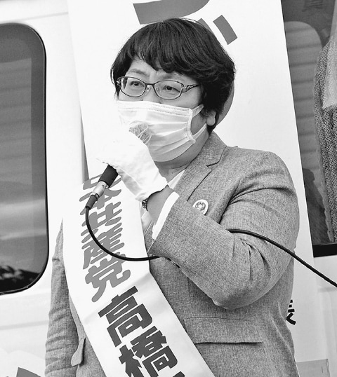 高橋候補は、後手後手のコロナ対策の反省もなく、政治私物化と隠ぺいをする自公政権を批判。市民と野党の共闘を実らせ、比例東北2議席を獲得する強い決意を示し、「本気で政権交代をめざします。新しい政治をつくるため投票に行こうと訴えてください。声が届く政治に変えましょう」と訴えました。