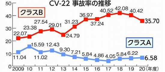 また、「クラスB」事故率は35・70で、前年度より減少しましたが、2番目に多いB1爆撃機の18・30と比べて突出しています。