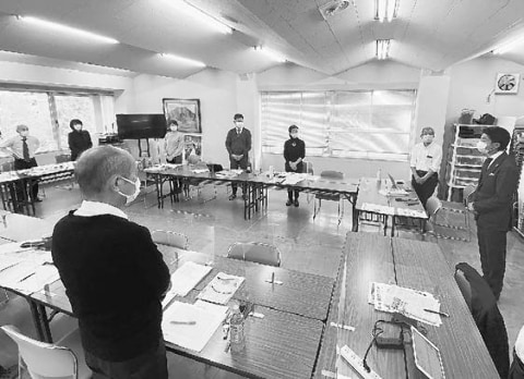 ![]() (写真)共産党県委員会役員に当選のあいさつをする青柳氏(右端)=2日、横浜市 |
