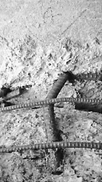 ![]() (写真)東京電力柏崎刈羽原発の大物搬入建屋を支えるくいの損傷部位。鉄筋が変形しています=東京電力提供 |