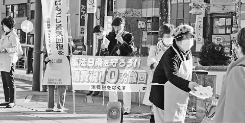 ビラを受け取った埼玉県羽生市の男性(51)=自営業=は「生活必需品にも課税される消費税10%の負担は大きい。株取引の利益などへの課税を強化し、消費税は引き下げるべきだ」と話し、署名に応じました。